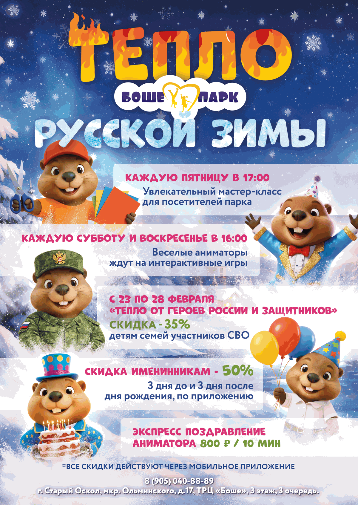 С 23 по 28 февраля «тепло от героев России и защитников» - скидка -35% детям семей участников СВО